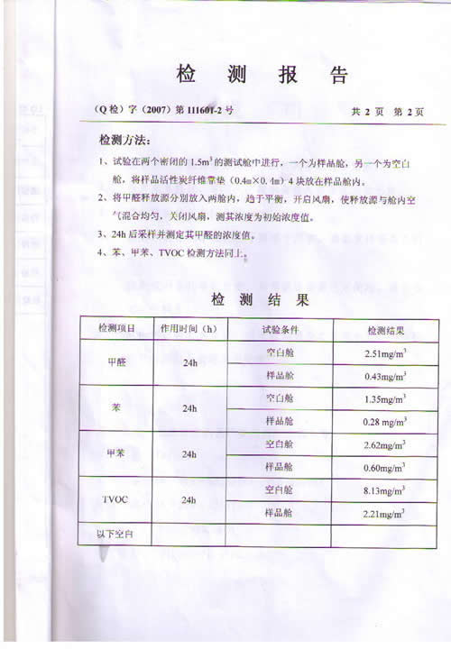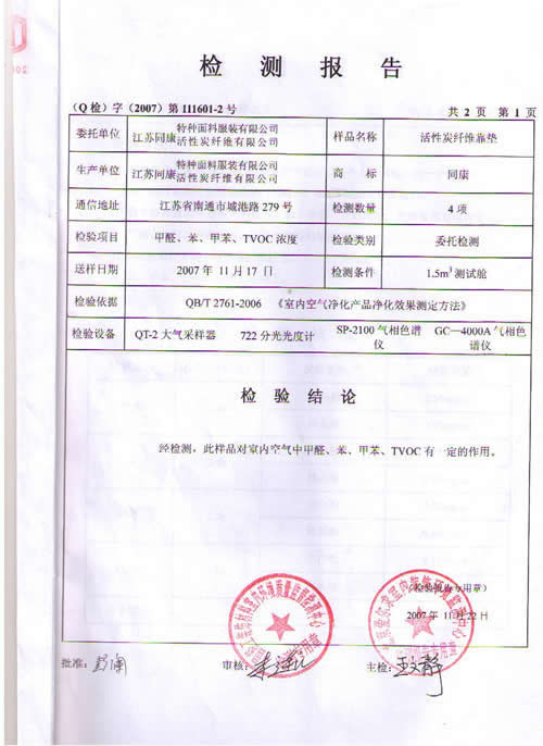 活性碳纖維靠墊檢測報告
