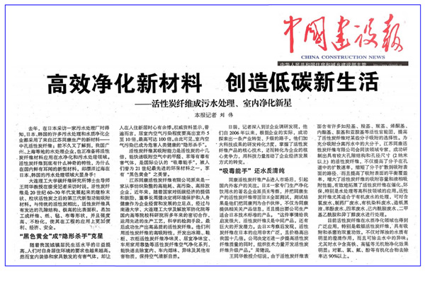 中國建設(shè)報——高效凈化新材料、創(chuàng)造低碳新生活
